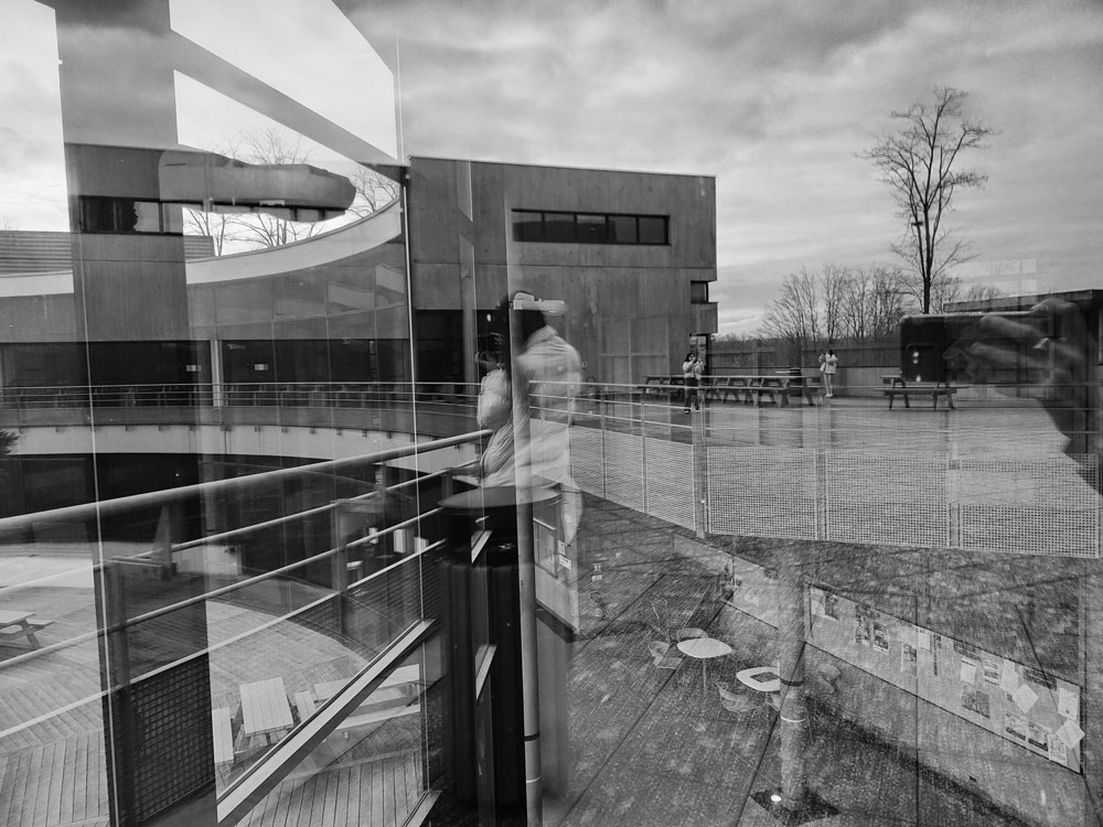 « Le Learning Center, plus qu’un endroit pour étudier, permet de se détendre. Cette vitre nous offre une belle vue sur l’extérieur.«