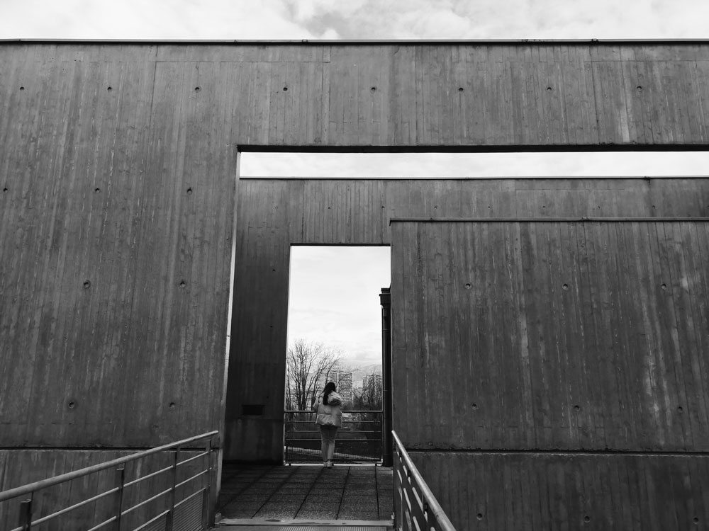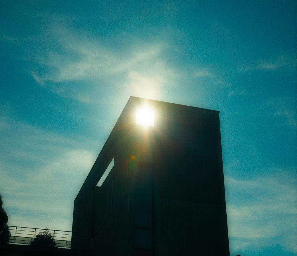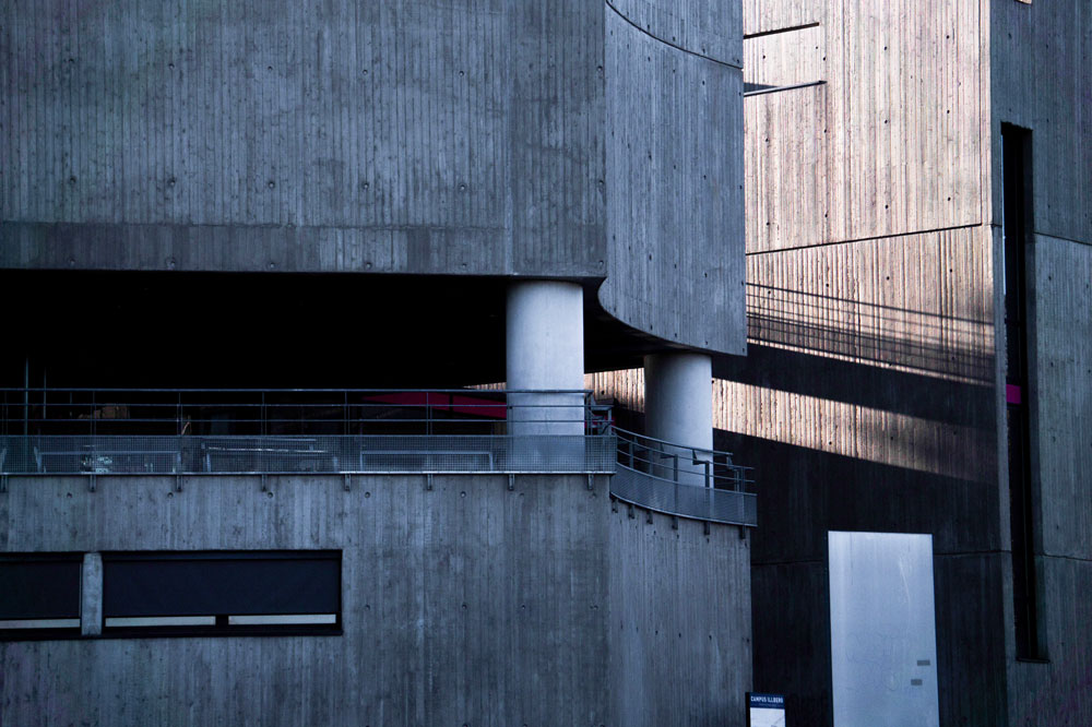 « Un zoom architectural sur les lignes brutalistes du bâtiment, révélées par un jeu naturel d’ombre et de lumière, presque monochrome.«