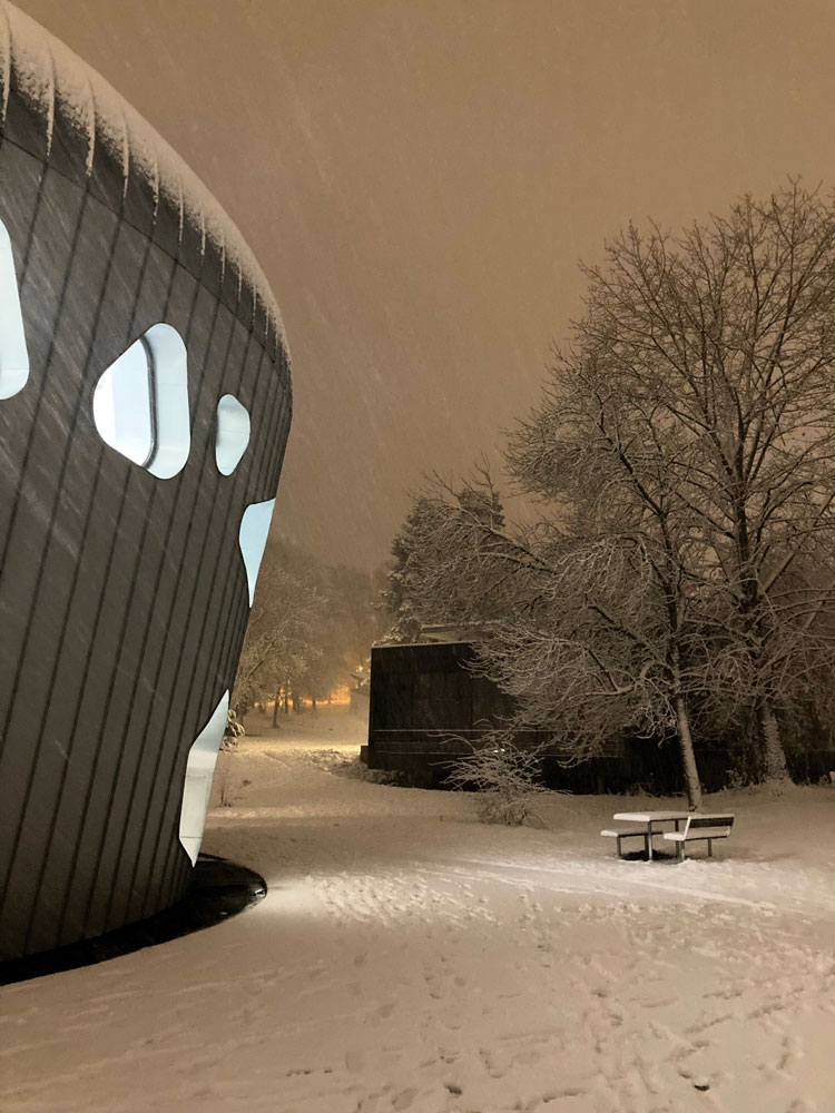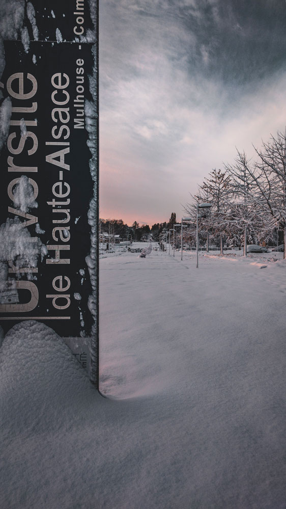 « Après la nuit du 21 novembre 2024 qui fut très enneigée, j’ai eu la chance de retrouver le campus méconnaissable et désert.«
