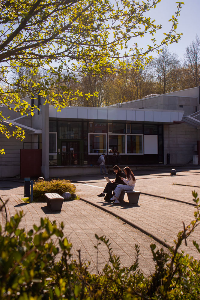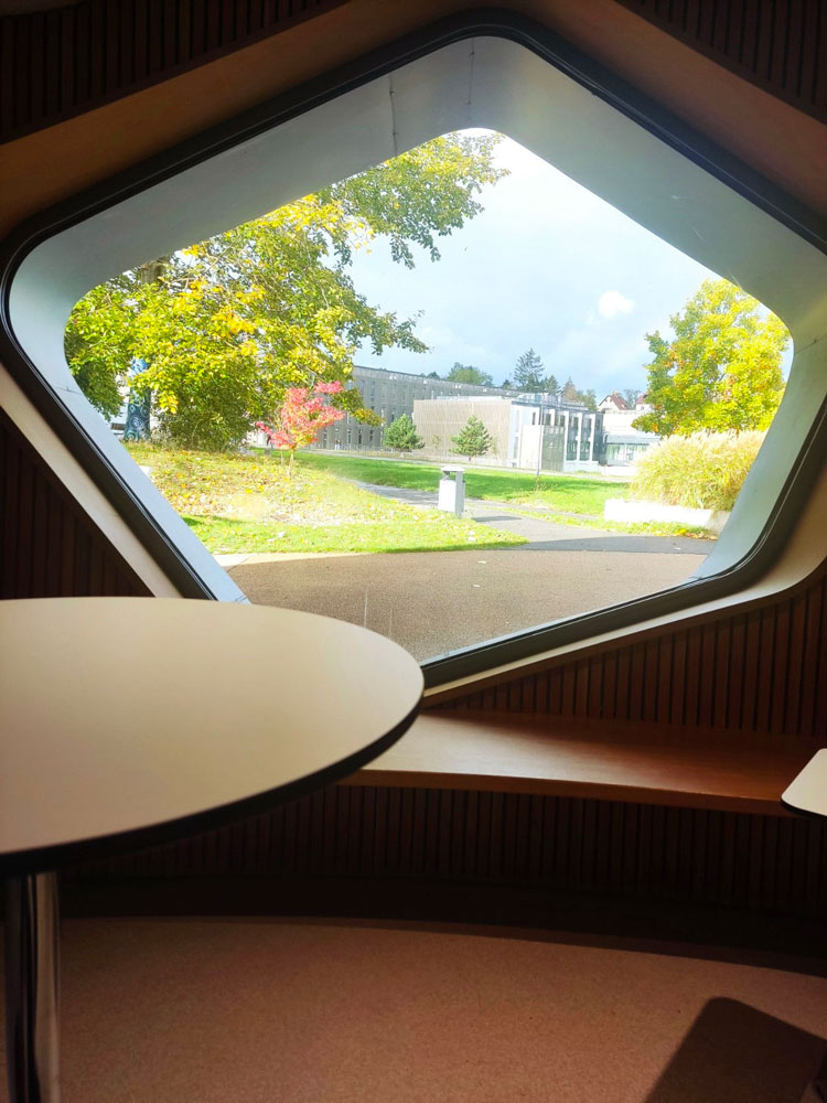 « Photo prise depuis l’intérieur du Learning Center de l’IUT de Colmar sur le Campus Grillenbreit.«