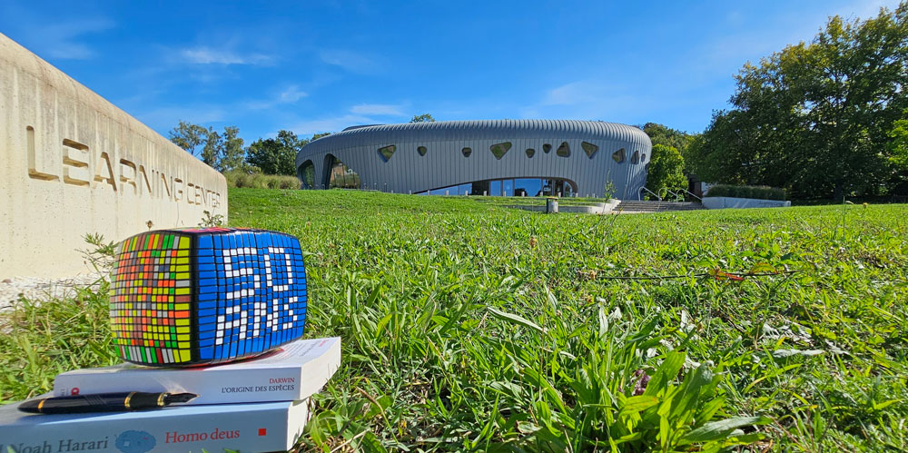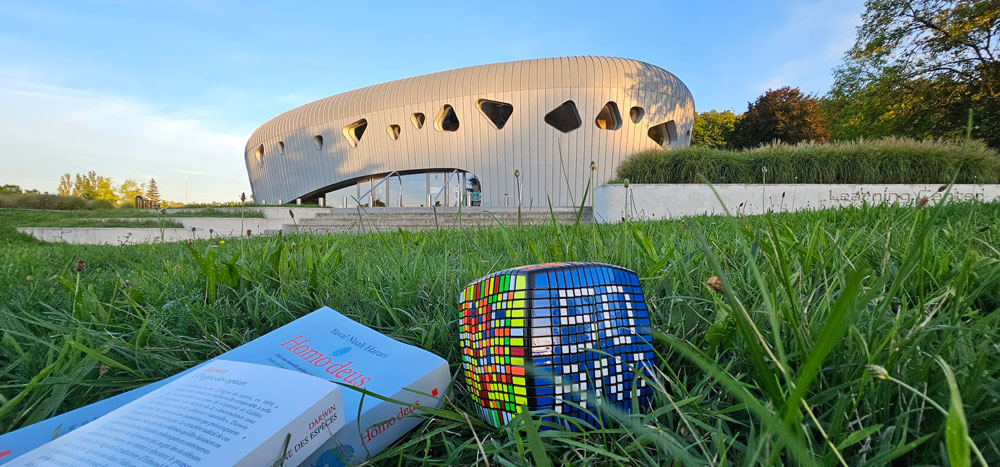 « Des origines de notre espèce aux futurs possibles, Sapiens poursuit son écriture. Cinquante ans de lumière portés par l’UHA s’ancrent comme socle vivant pour l’avenir. Le Rubik’s aux couleurs de l’université devient allégorie : chaque face un défi, chaque rotation une leçon, chaque résolution rappelle que le chemin des savoirs n’est jamais terminé.«