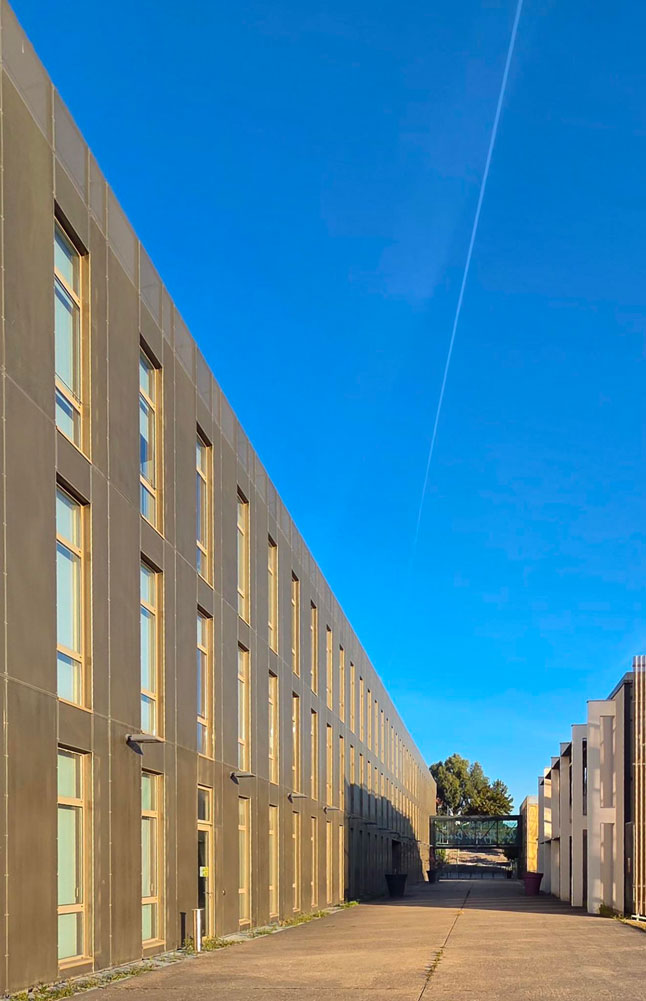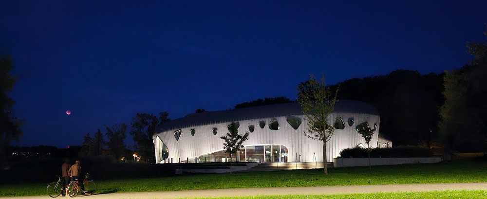 « Sous une lune écarlate, le Learning Center se dresse, sentinelle du savoir. Cinquante ans de lumière y trouvent leur reflet, là où architecture et cosmos se rejoignent. Dans le calme du campus, l’infini se fait sensible.«