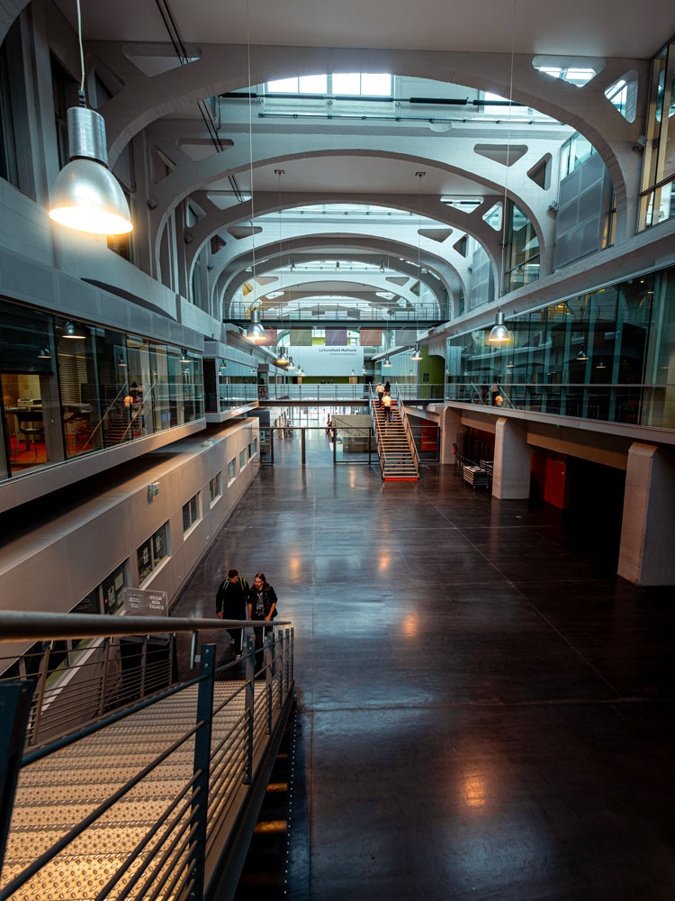 « À travers cette photo, j’ai voulu mettre en avant le quotidien des étudiants, déambulant dans cet immense ancien bâtiment industriel.«