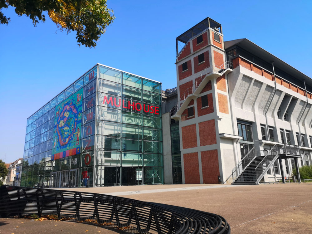 « Le Learning Center du Campus Illberg, symbole d’apprentissage et de savoir, s’impose en arrière-plan. À l’avant, un vélo rappelle l’importance allouée aux mobilités douces à Mulhouse, largement adoptées par les étudiants.«